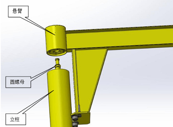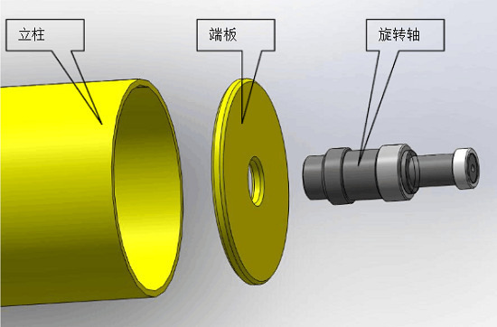 首先將立柱式起重機旋轉軸與端板調整好位置后焊接固定,保證旋轉軸的垂直度。然后將端板放入立柱中,按圖紙尺寸,與立柱焊接固定。將腰圈軌道套入立柱,按照圖紙尺寸調整相應位置后,與立柱焊接固定,完成安裝。